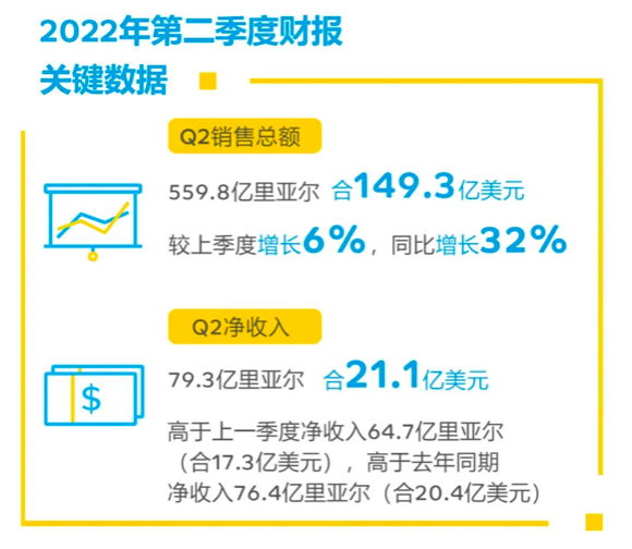 第二季度總銷售額:55.98億里亞爾(14.93億美元),環(huán)比增長6%,同比增長32%;